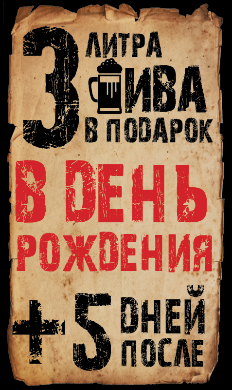 Акция действует в День Рождения + 5 дней после! При себе необходимо иметь паспорт